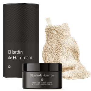 El auténtico ritual purificador del Hammam en su versión más sofisticada. Crema de Jabón negro con eucalipto, de alto poder detox, Guante Kessa de fibra vegetal de ramio para exfoliar y renovar la piel de manera 100% natural.